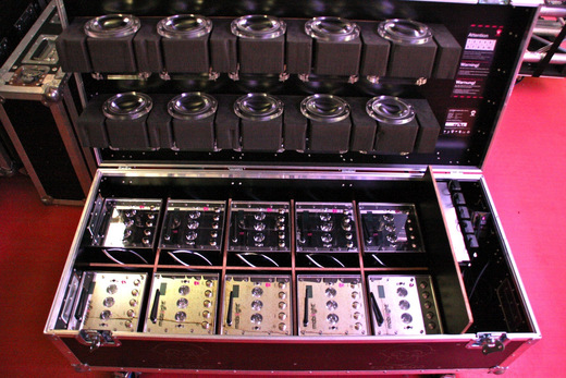 Seit einiger Zeit setzen wir für dezentrale Dekorationsbeleuchtungen Akkuleuchten von Apelabs ein. Die Mobilight Serie besticht durch ihre Handlichkeit, der langen Akkulaufzeit und dem hohen Lichtoutput. Zudem können die Leuchten sowohl im Standalone Modus betrieben oder per Fernbedienung und sogar via DMX angesteuert werden. Als zusätzliches Gadget werden die Mobilights mit verschiedenen Linsensätzen ausgeliefert, je nachdem, ob man einen Spot- oder einen Washeffekt erzielen möchte. Die Optikaufsätze sind mit ein paar wenigen Handgriffen montiert. Zudem fungiert das Flightcase ebenfalls als Ladestation - mühsames Verkabeln der Einheiten fällt somit weg. Unser Mobilight-Pool umfasst neu 44 Stück der v2-Serie.