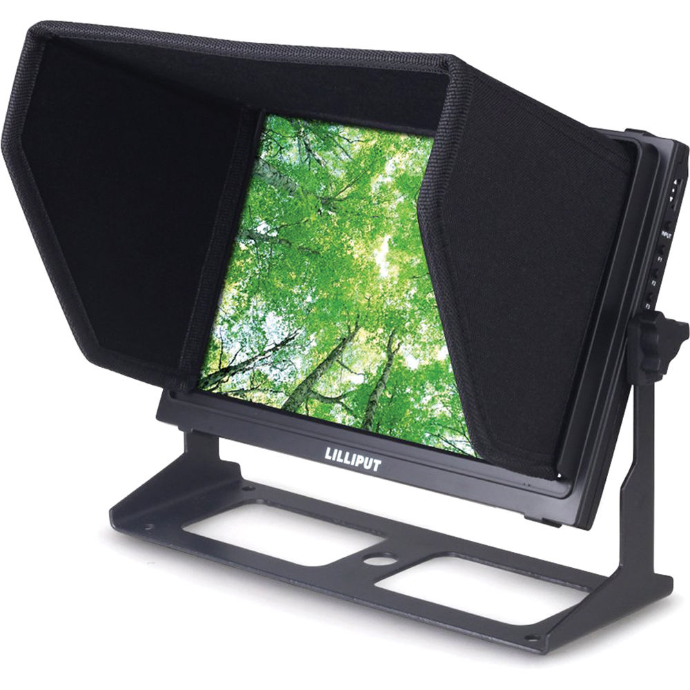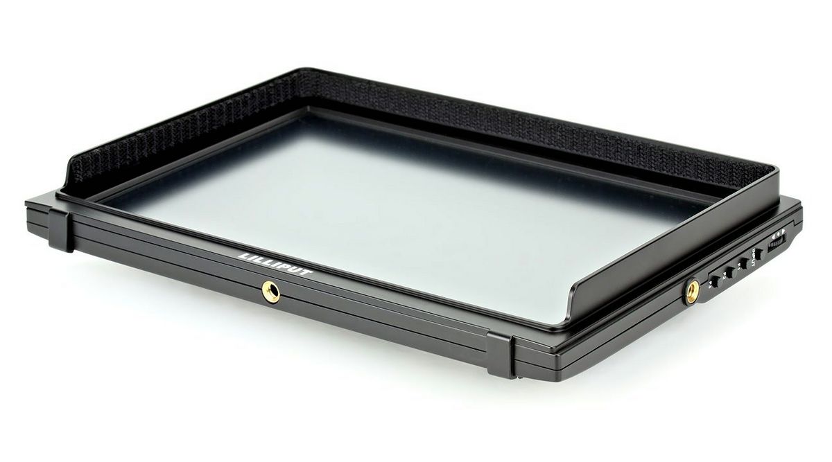 Das LCD-Panel überzeugt mit einer nativen Auflösung von 1280 x 800 Pixeln und einer Latenzzeit von weniger als 20 Millisekunden. Dabei hat sich Lilliput die IPS-Technologie zu Nutze gemacht, welche auch in modernen Smartphones zu finden ist und die detailgetreue Farbdarstellung deutlich verbessert. Der Monitor ist mit 3G-SDI-, HDMI- sowie den analogen Anschlüssen VGA und Composite ausgerüstet, was eine hohe Flexibilität in Sachen Signalverarbeitung zulässt. Als ergänzendes Zubehör lässt sich zudem den bei Kamerasuchern übliche Abschatter am Schirm anbringen, um störenden Lichteinfall auf das Display zu minimieren.
