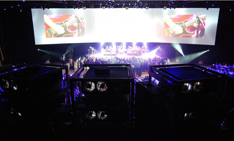 Wir verfügen über verschiedene Grössen an rahmenlosen Leinwänden im 16:9 Format: 360 x 203cm, 400 x 225cm, 460 x 259xm. Darüber hinaus stehen Panoramafolien in diversen Formaten für Wideedge- oder Hintergrundprojektionen zur Verfügung - ebenfalls inklusive Rahmensystem: 900 x 300cm, 900 x 500cm.