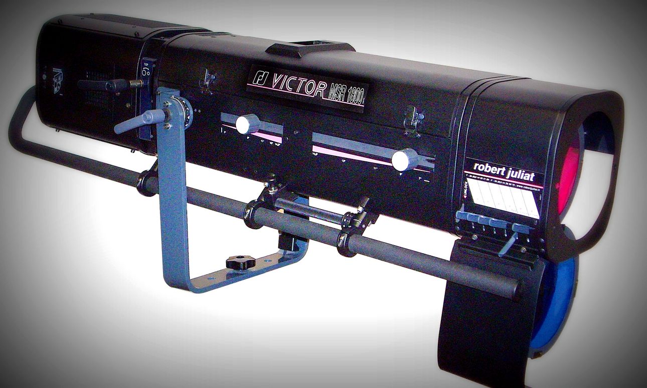 Der Victor 1159 von Robert Juliat ist ein Verfolger für Entfernungen von ca. 20 bis 60m. Der Victor bietet mit seiner 1,8KW MSR Entladungslampe und der hochvergüteten Linse eine enorme Lichtleistung, die ohne Weiteres mit 2,5kW Verfolgern vergleichbar ist; und das in einem äußerst kompakten Gehäuse. Der Zoombereich beträgt dabei 7 - 14.5°. Dieser professionelle Verfolger verfügt über einen präzisen, mechanischen Dimmer und ist mit einem Boomerang-Farbwechslermagazin ausgerüstet. Eine Goboaufnahme zählt ebenfalls zu den Ausstattungsmerkmalen. Anstelle des Gobohalters kann auch ein optional erhält -licher horizontaler Blendenschieber eingesetzt werden.
