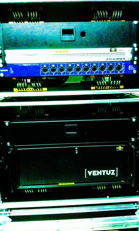 Unser Watchout-System besteht aus einem Steuerrechner und bis zu zwei Vierfach-Displayrechnern. Sämtliche Komponenten sind in Schwingcases verpackt und somit für den harten Produktionsalltag bestens gerüstet.
